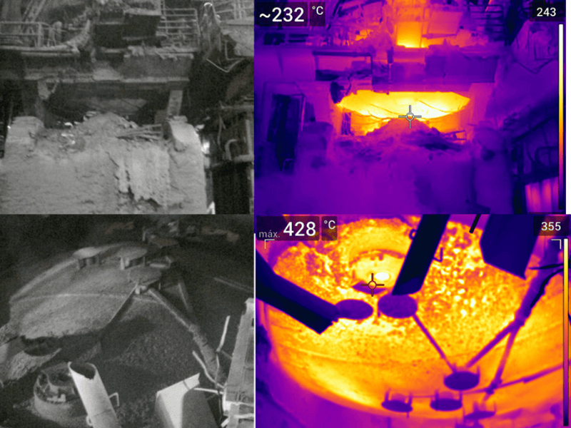 Na indústria siderúrgica, o controle térmico é indispensável para manter a estabilidade dos processos. O uso de câmeras infravermelhas possibilita o monitoramento de: